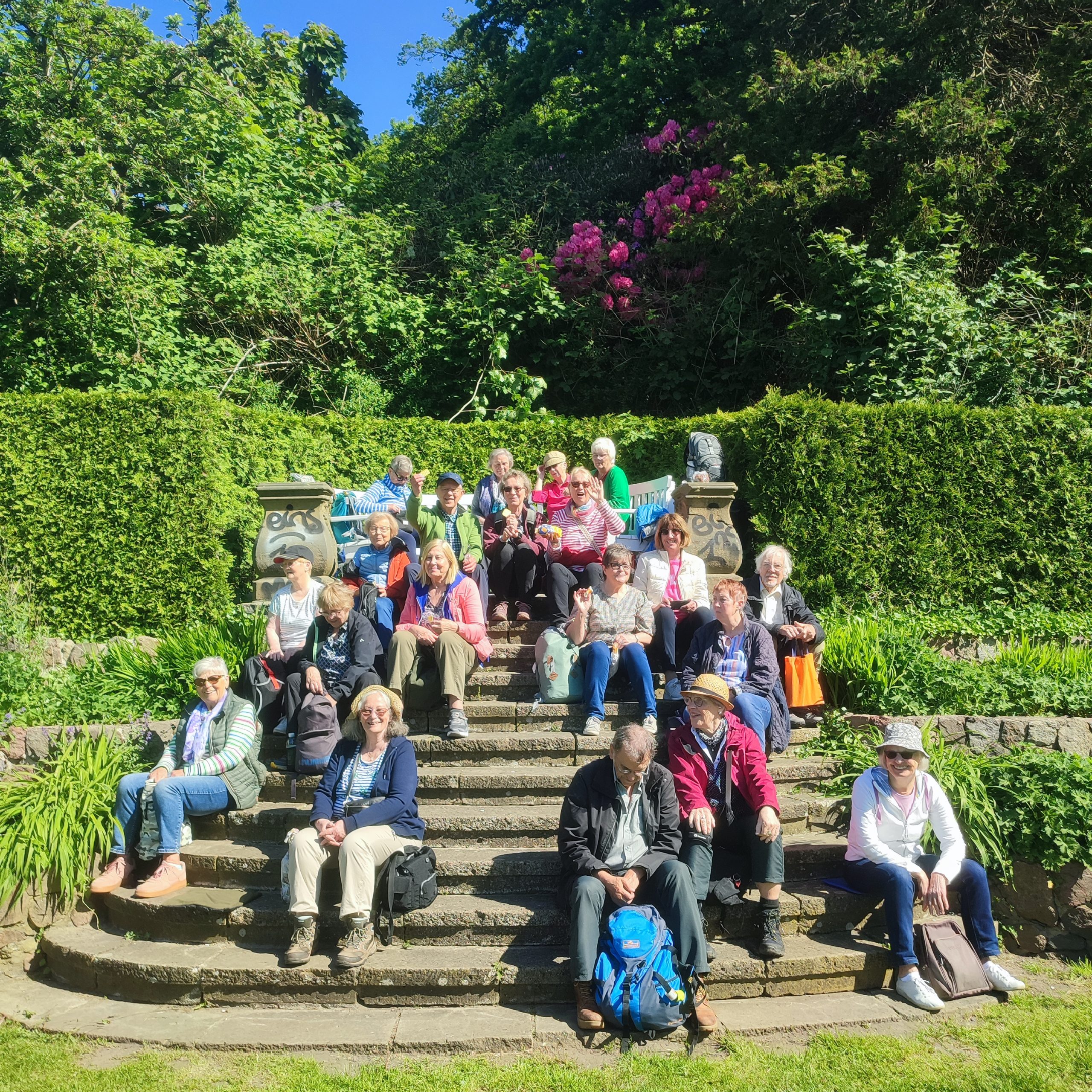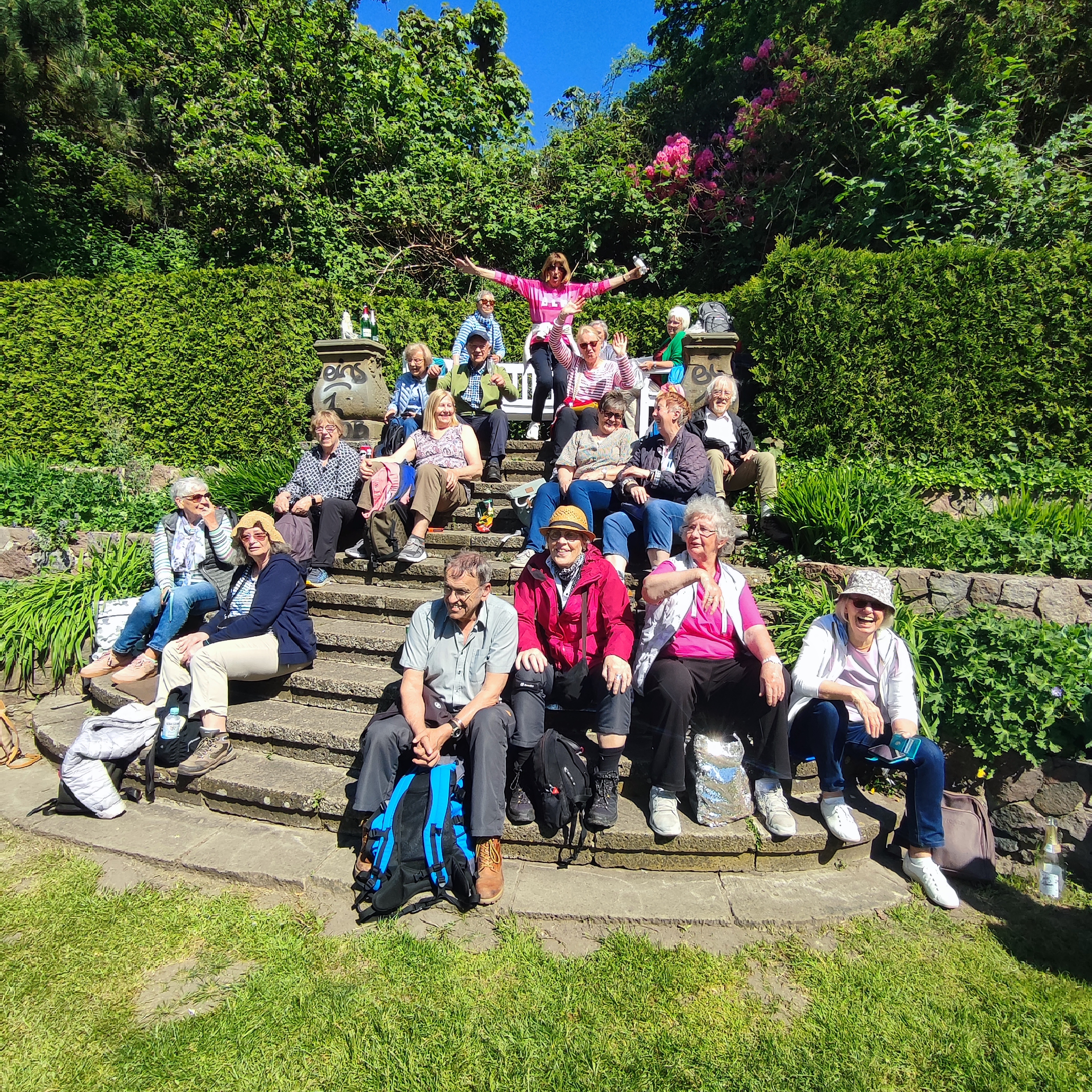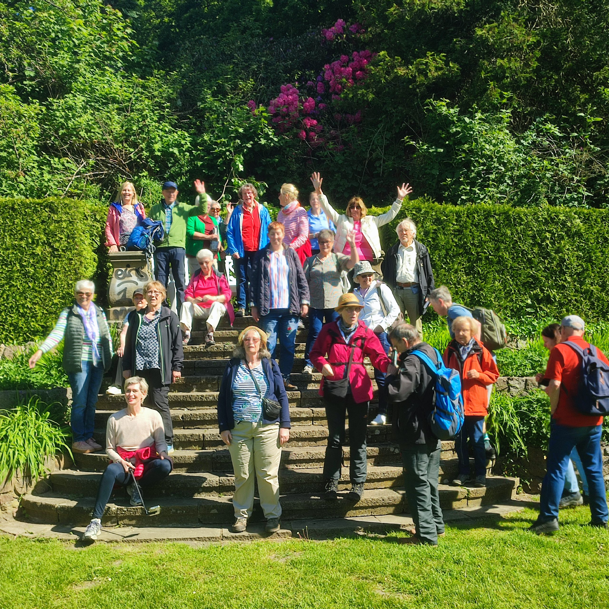 Marion Bruhn feierte ihr 20-jähriges Wanderführer-Jubiläum in stilvollem Rahmen – mit Sektempfang im Römischen Garten. Bei schönstem Wetter kamen ehemalige sowie aktive Wanderfreundinnen und -freunde zusammen, um gemeinsam zurückzublicken und zu feiern.